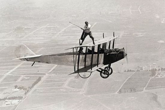 Al Wilson war ein berühmter Stuntman und Pilot in der Ära der Stummfilme. Neben seinem Können im Cockpit war er bekannt für spektakuläre Flugmanöver – häufig ohne doppelten Boden. Seine Stunts wurden oft für Filmaufnahmen genutzt, darunter auch das legendäre Golfspiel in luftiger Höhe.